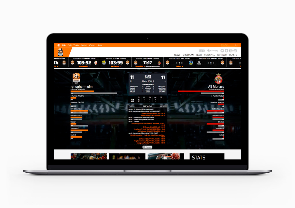 Der neue Web-Auftritt der BBU ’01 GmbH vereint die vorher einzelnen Websites des Bundesliga-Teams „ratiopharm ulm“ sowie des Vereins, der Nachwuchs-Vereine und anderer Bereiche, wie Campus und eSports.