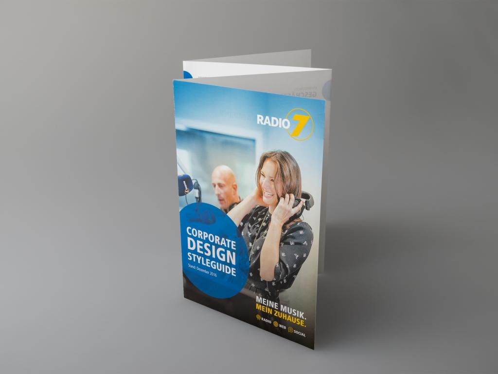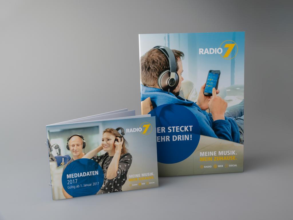 Das neue Corporate Design von Radio 7 zeigt nun deutlich mehr Konsequenz: Durch eine feste Positionierung des Logos, des neuen Slogans „Meine Musik. Mein Zuhause.“ und der für die Wahrnehmung als Medienmarke entwickelten Icons für Radio, Web und Social. Zentrales Element für die Positionierung von Text und weiteren Inhalten ist ab sofort ein großer, blauer Kreis. Und auch der Bildlook differenziert sich – durch einen fix definierten Filter sowie den konsequenten Einsatz der Farbe Blau. Neben der kompletten Geschäftsaustattung wurden diverse Plakatkampagnen, Anzeigen und Online-Banner im neuen Corporate Design realisiert.