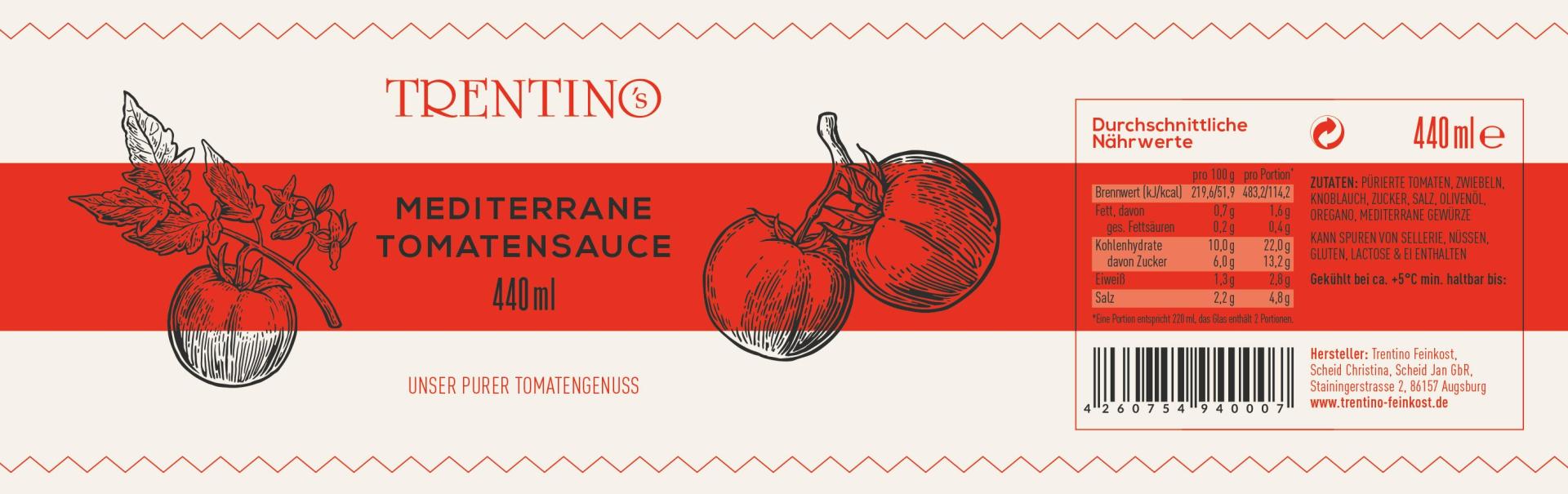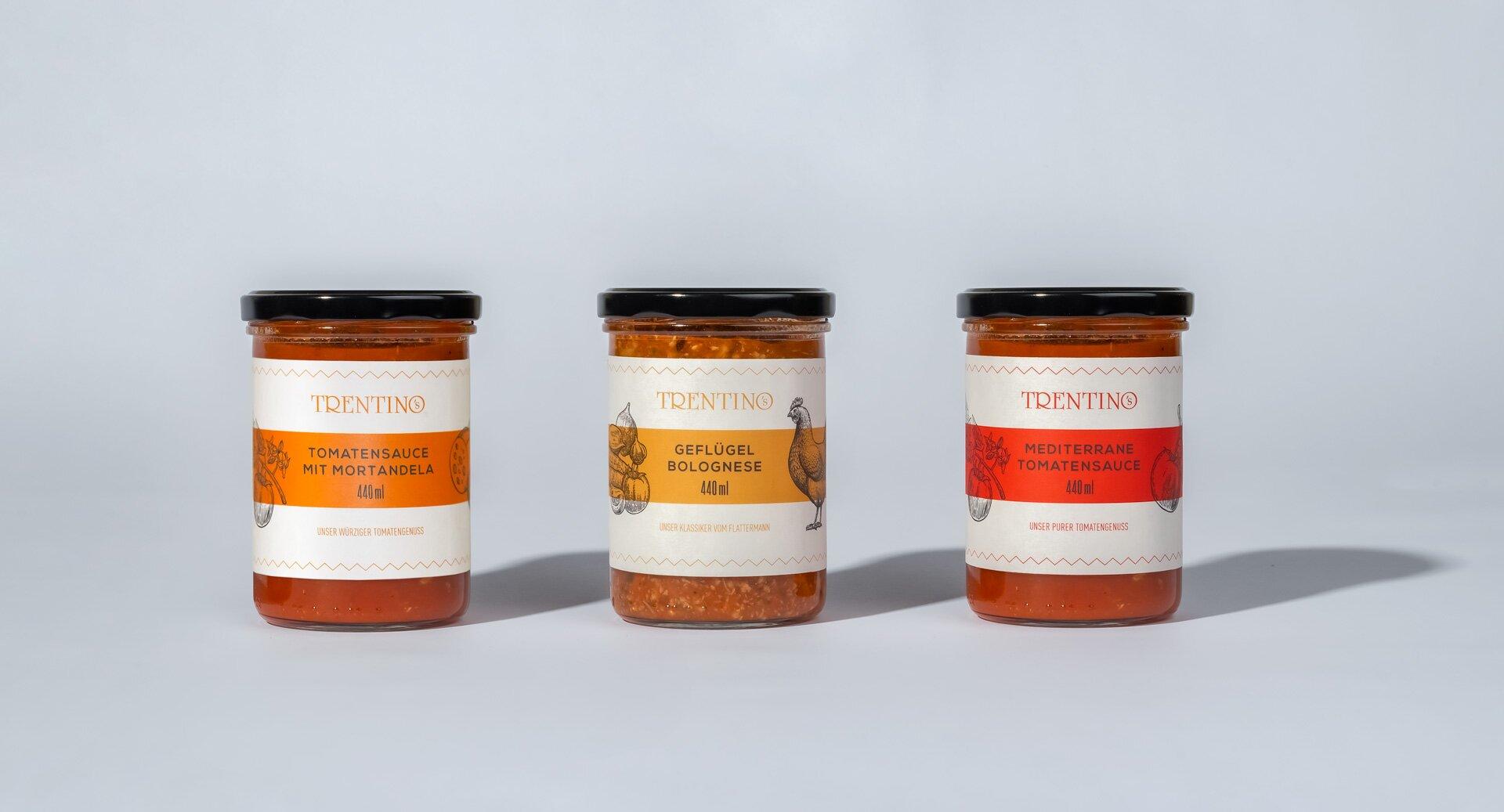 Ohne Schnickschnack: Damit das Äußere zum Inneren passt, durften wir die neuen Etiketten für Trentino’s Pastasaucen gestalten. Wer Geflügel Bolognese, Mediterrane Tomatensauce und Tomatensauce mit Mortandela ohne großen Aufwand genießen möchte, isst mit diesen Saucen genau richtig!